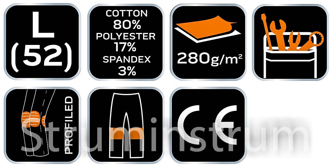 • Матеріал: 80% бавовна, 17% поліестер, 3% спандекс