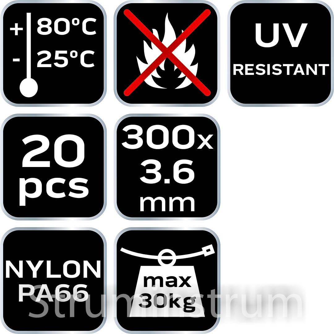 Стяжки кабельні EXTREME 3,6 × 300 мм, білі 20 шт. NEO TOOLS (арт. 01-655)