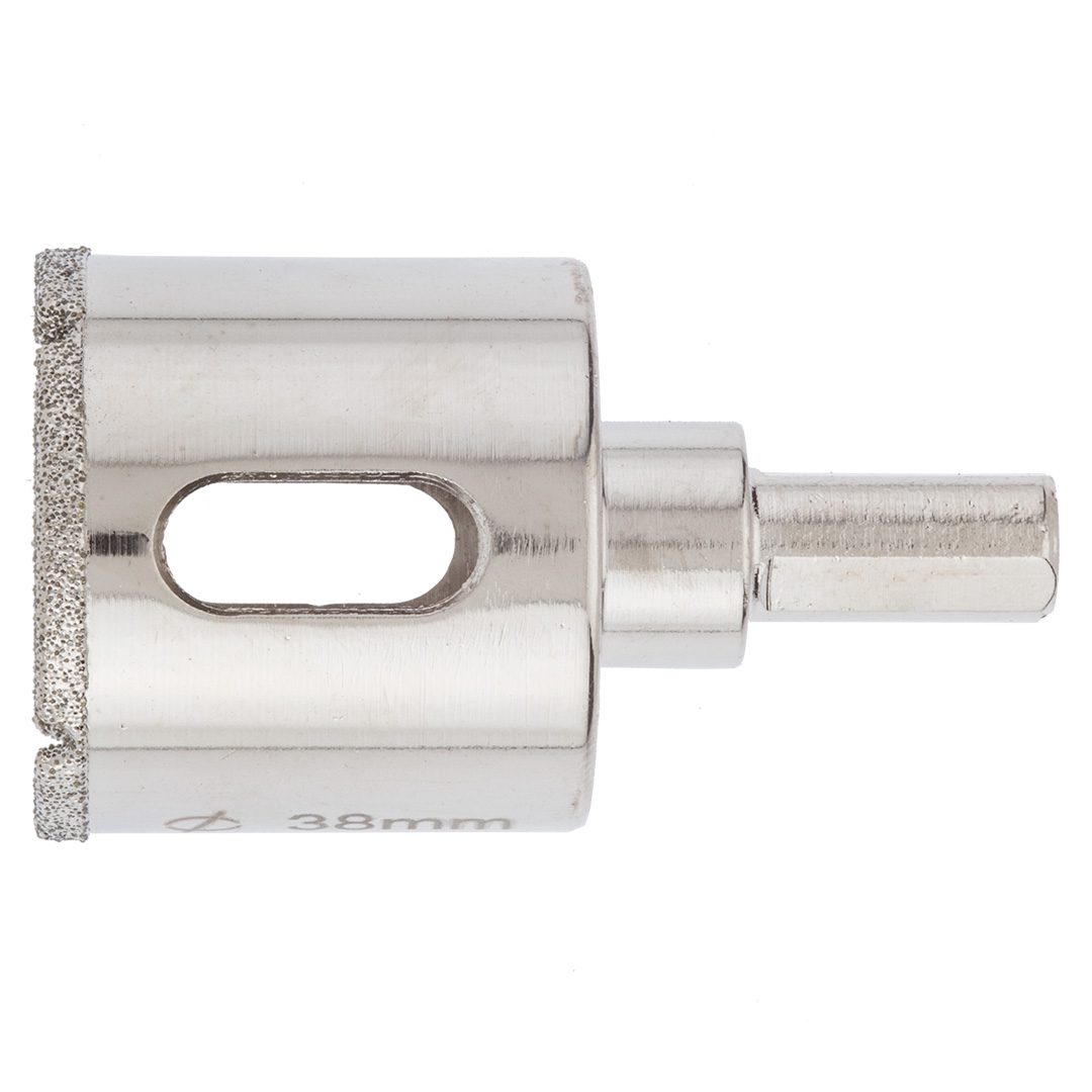GRAPHITE 57H290 — діамантове свердло діаметром 38 мм. Гальванічне покриття леза. Для твердих матеріалів: плитки, гресу, граніту, мармуру.