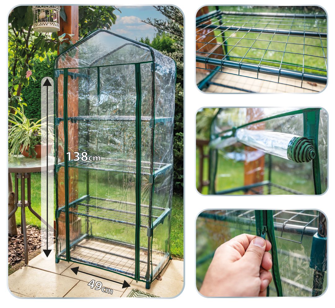 Теплиця 69 х 49 х 160 см, плівка ПВХ, металоконструкція 15-901 від NEO – це розбірна теплиця для використання в закритих приміщеннях і на відкритому повітрі. Має стійку металеву конструкцію з порошковим покриттям та плівку ПВХ. Він має розміри 69 х 49 х 160 см. Легко збирається. Закривається на практичну блискавку, а передня частина теплиці може бути складена для полегшення догляду за рослинами. Передній отвір має розміри 49 х 138 см. Теплиця обладнана чотирма стелажами. Це буде сучасна та цікава альтернатива для всіх, хто мріє вирощувати власну зелень, фрукти чи овочі.