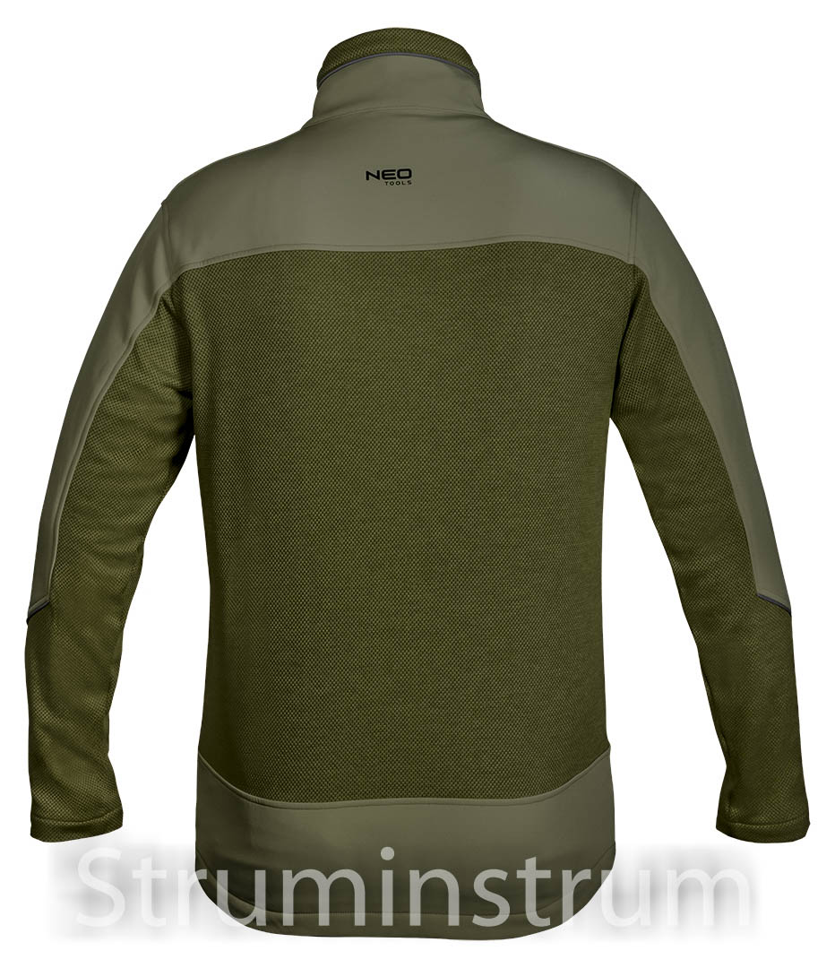 NEO TOOLS 81-517-S — робочий світшот OUTDOOR з трикотажними вставками softshell, у зеленому кольорі, зі зручними кишенями та застібкою-блискавкою.
