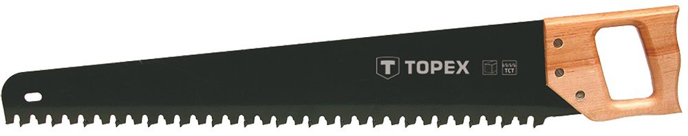 Ножівка для пористого бетону TOPEX довжина ріжучого леза 600 мм. Має товсті зуби з твердосплавними пластинами. Профільована ручка з щільної деревини дозволяє точно вести ножівку. Бренд TOPEX призначений для домашніх майстрів.