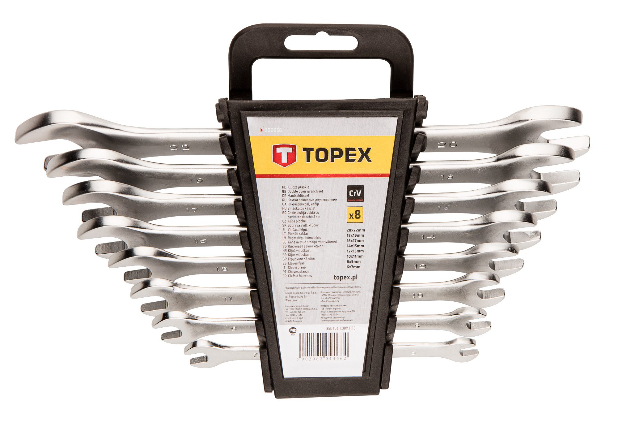 Topex Ключі гайкові, набір 8шт, двосторонні, CrV, 6-22мм