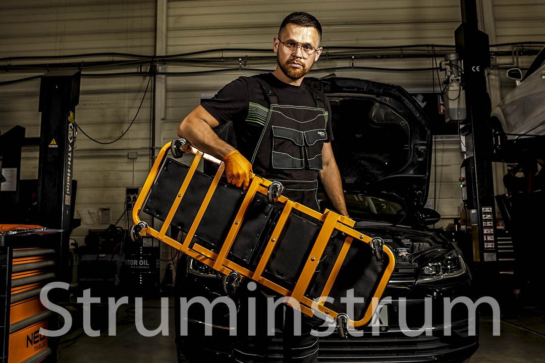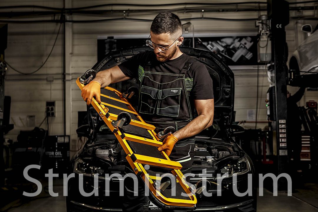 Візок полегшує роботу в автомайстерні, створений для майстрів, які займаються обслуговуванням автомобілів, надаючи ергономічність та мобільність у щоденній роботі.