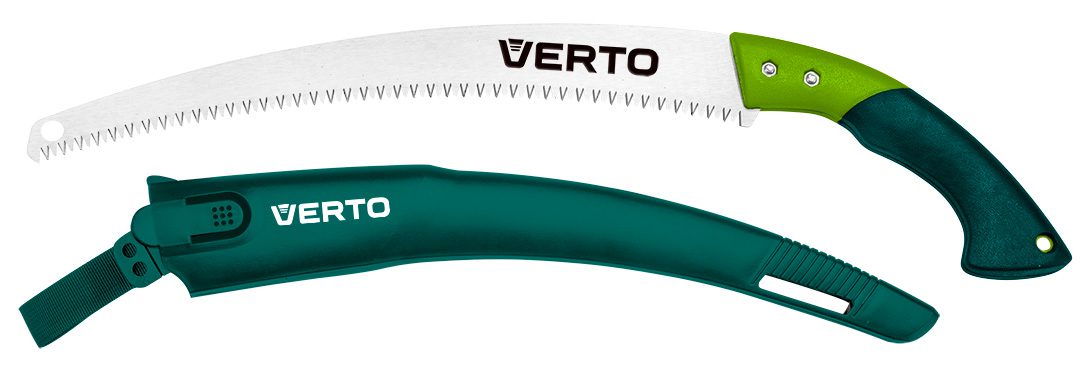 Пила садова вигнута Verto, довжина полотна 350 мм. Незамінна при виконанні садово-городніх робіт. Спеціальний крок 7 зубів на дюйм підвищує ефективність роботи.