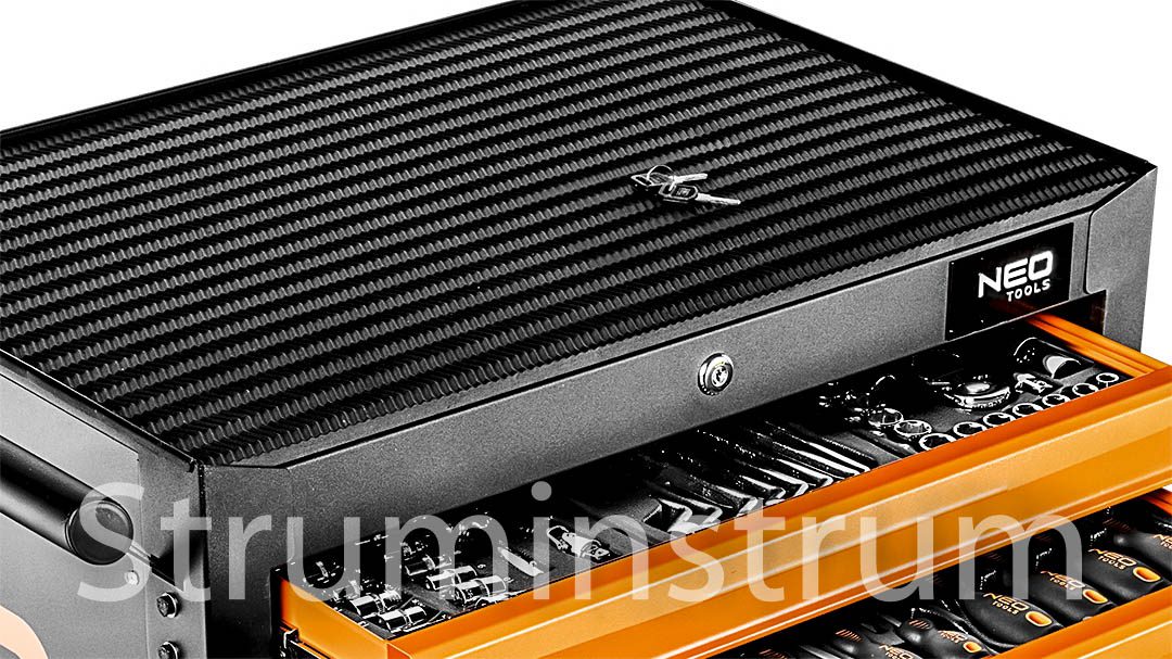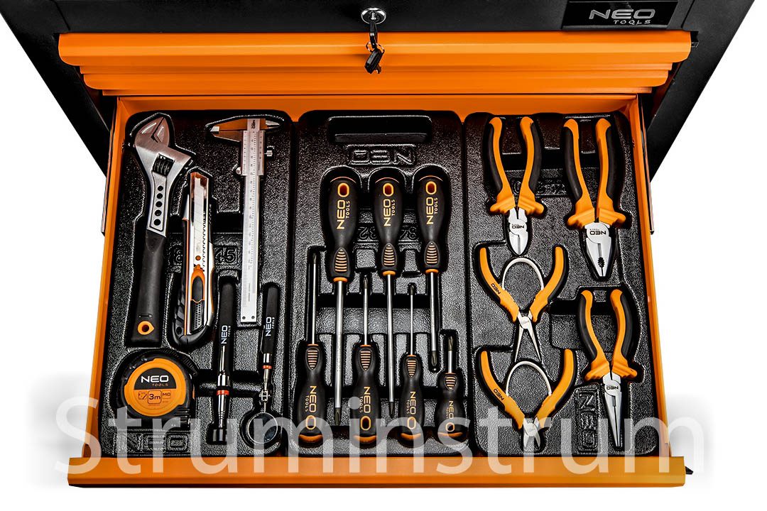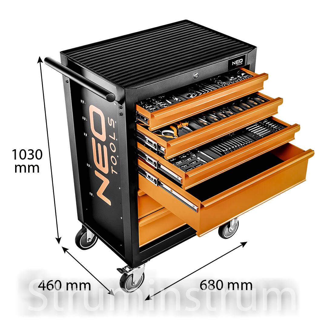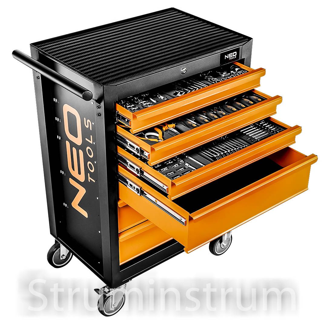 Шафа-візок NEO TOOLS — професійне рішення для майстерні, що поєднує міцність, мобільність та повну комплектацію інструментами для механічних робіт.
