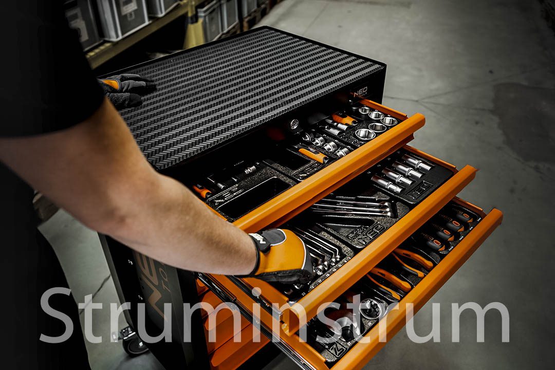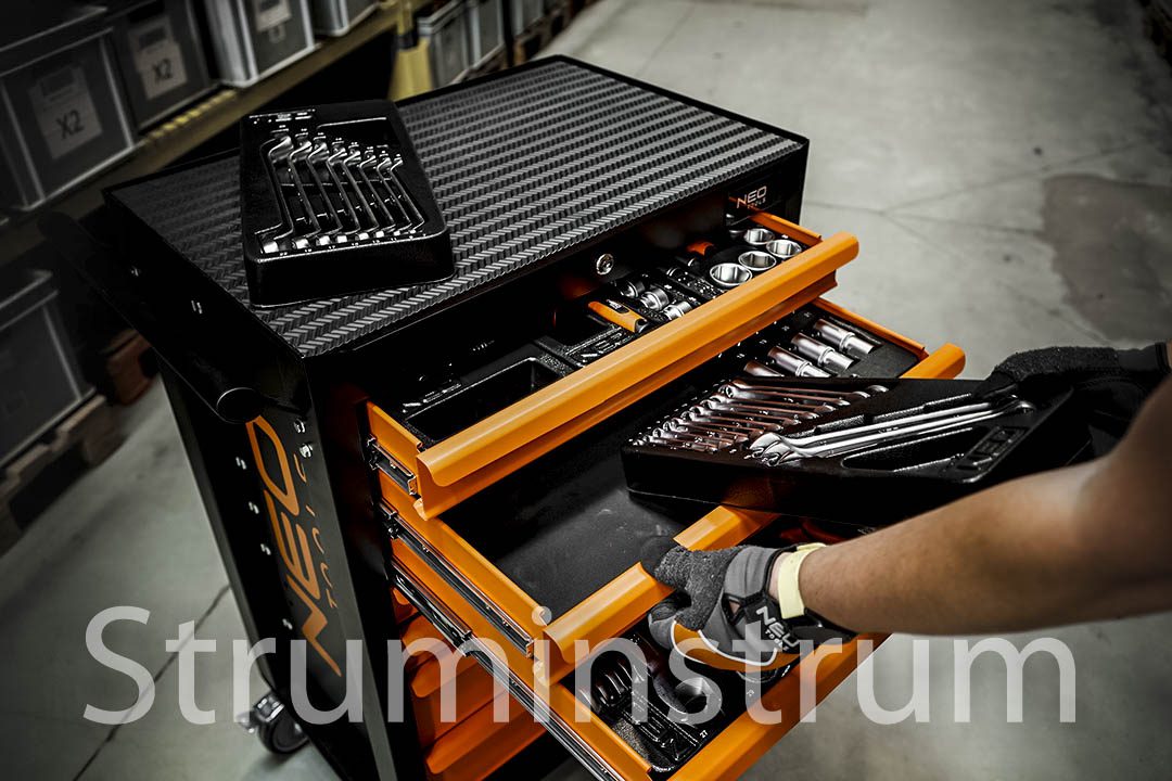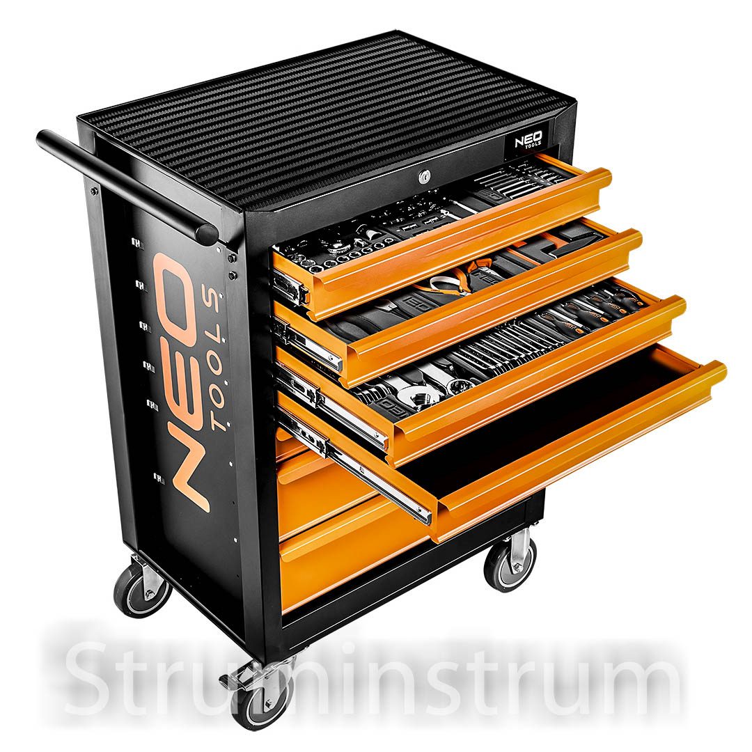 Візок-шафа NEO TOOLS — оптимальне рішення для майстерні, що поєднує міцність, мобільність та повну комплектацію інструментами для професійних і DIY робіт.