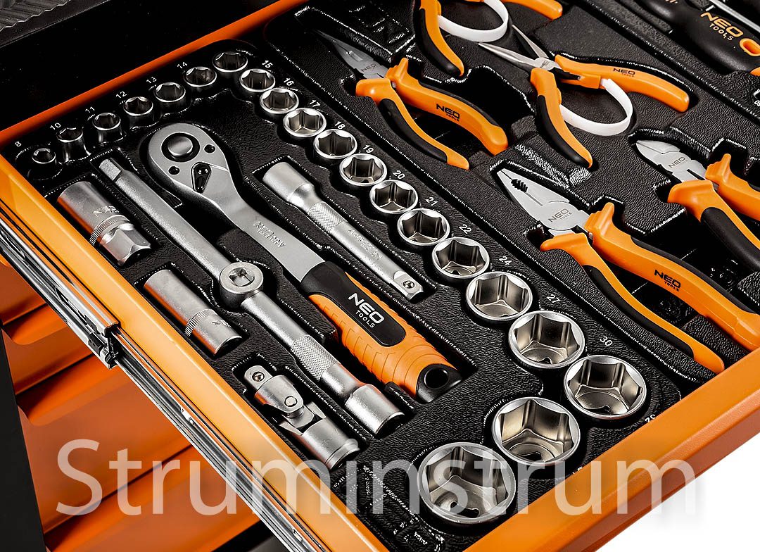 Візок-шафа для майстерні 7 ящиків + 129 інструментів NEO TOOLS (84-222-9)Візок-шафа для майстерні 7 ящиків + 129 інструментів NEO TOOLS (84-222-9)