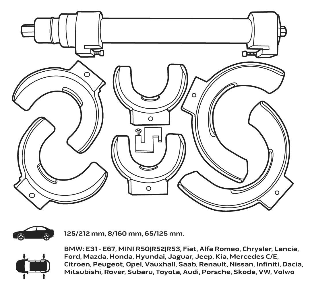 Знімач пружин NEO зі змінними наконечниками – це набір, призначений для заміни амортизаторів. Змінні ручки дозволяють працювати з пружинами різного діаметру. У наборі 3 пари щелеп. Набір упакований у футляр.